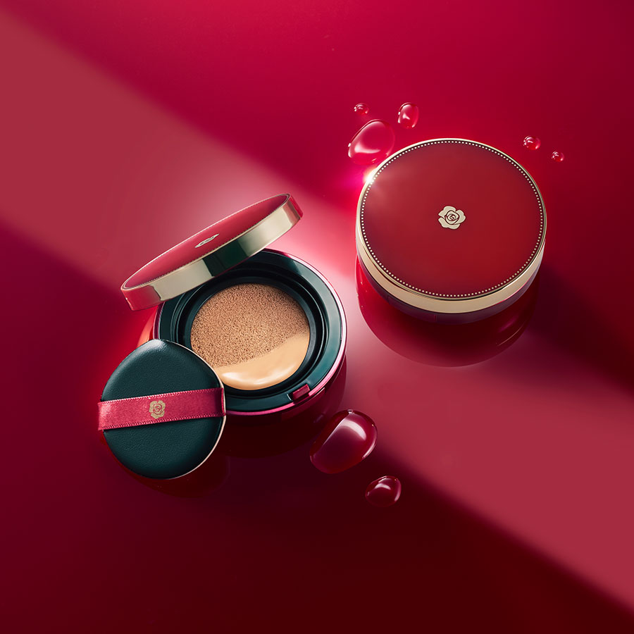 保湿力、カバー力どちらも兼ね備えたクッションファンデーション。しっとりナチュラルに仕上げ、うるおいを逃がさずキープするオリジナル処方で、乾燥肌の方にとくにおすすめです。また、光の乱反射を利用したパウダーで輝く肌を演出してくれます。