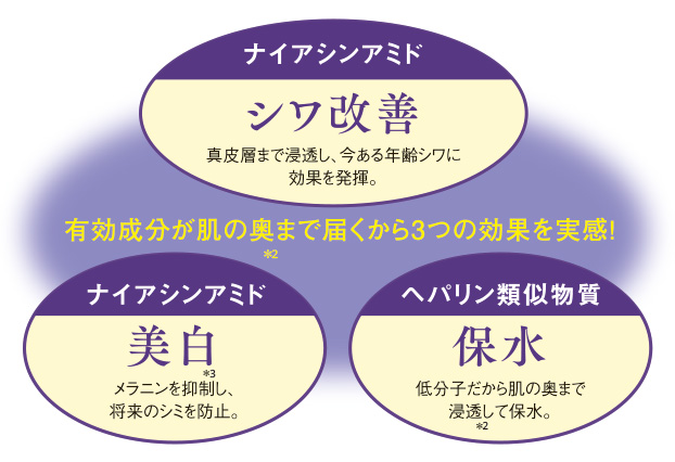 シワ改善・美白※3に効く有効成分「ナイアシンアミド」を配合した